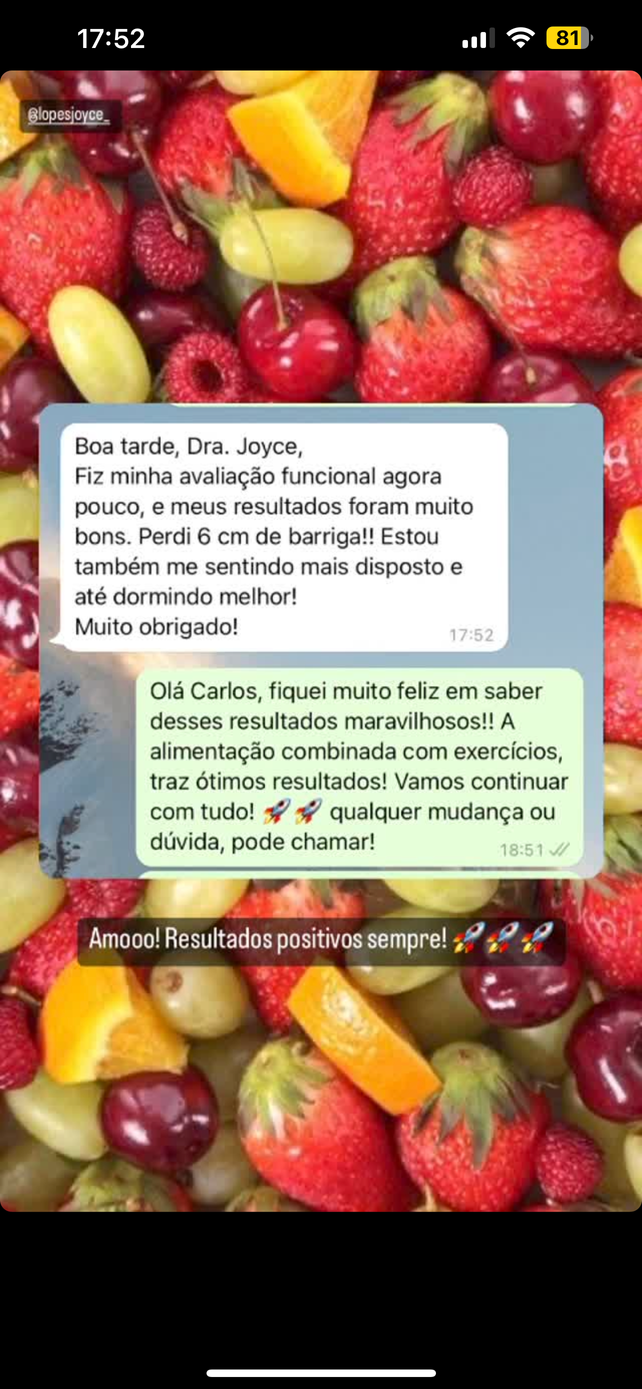 Dra. Joyce Lopes, profissional especializada em emagrecimento, hipertrofia, terapia alimentar e ganho de massa. Capacitada a atuar, visando ensinar e estruturar sua alimentação de forma saudável e fácil!